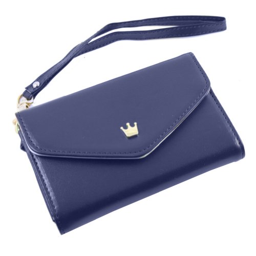 Multifunctional Coin Purse Wrist Bag Handbag Envelope Wallet Pouch for iphone 4 4S 5 Smart Phone (Navy Blue)